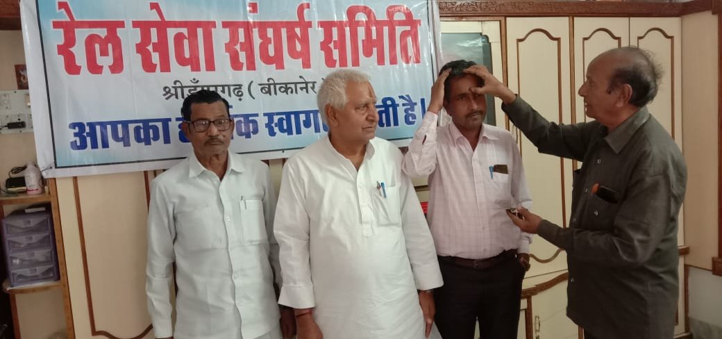 आज शिविर समापन समारोह के अवसर पर रेल संघर्ष समिति के द्वारा भी प्राकृतिक चिकित्सक डॉ राधेश्याम पारीक व रवि प्रकाश पारीक को साल ओढाकर और सम्मान देकर अभिनंदन किया गया ।