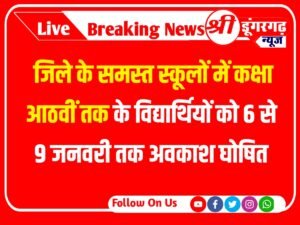 जिले के समस्त स्कूलों में कक्षा आठवीं तक के विद्यार्थियों को 6 से 9 जनवरी तक अवकाश घोषित